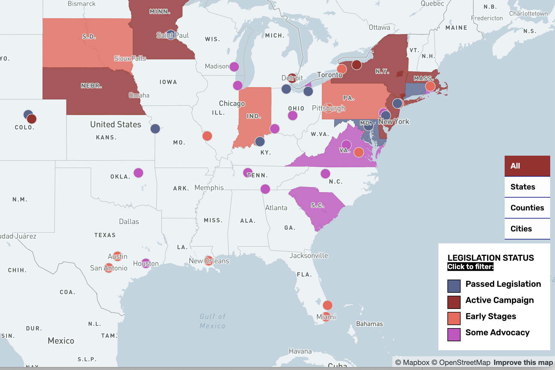 Interactive maps for immersive websites, social justice organizations, and other projects.