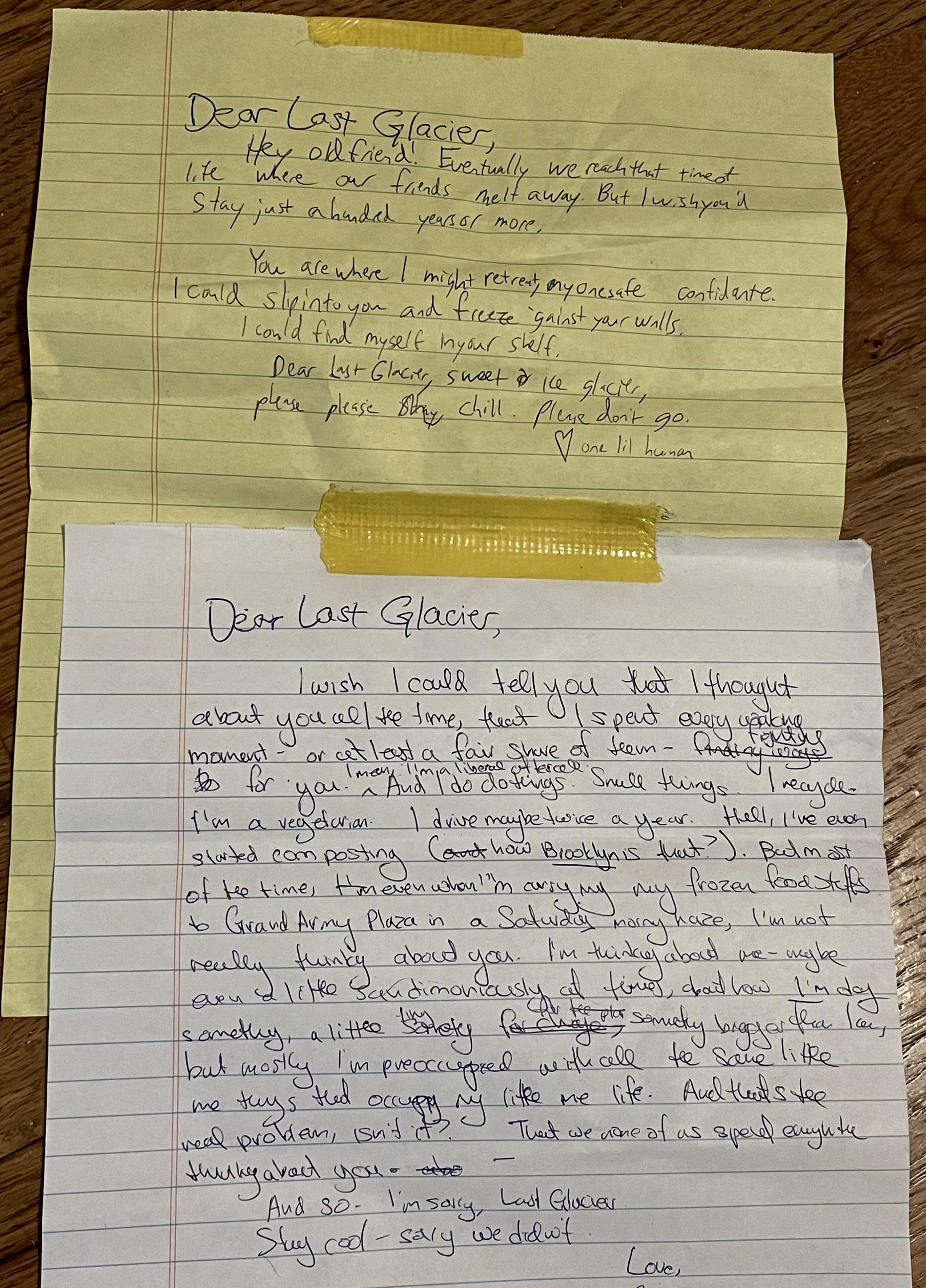 The audience became ship-mates on the boat, and they wrote letters to the last glacier that were read aloud and posted throughout the space.