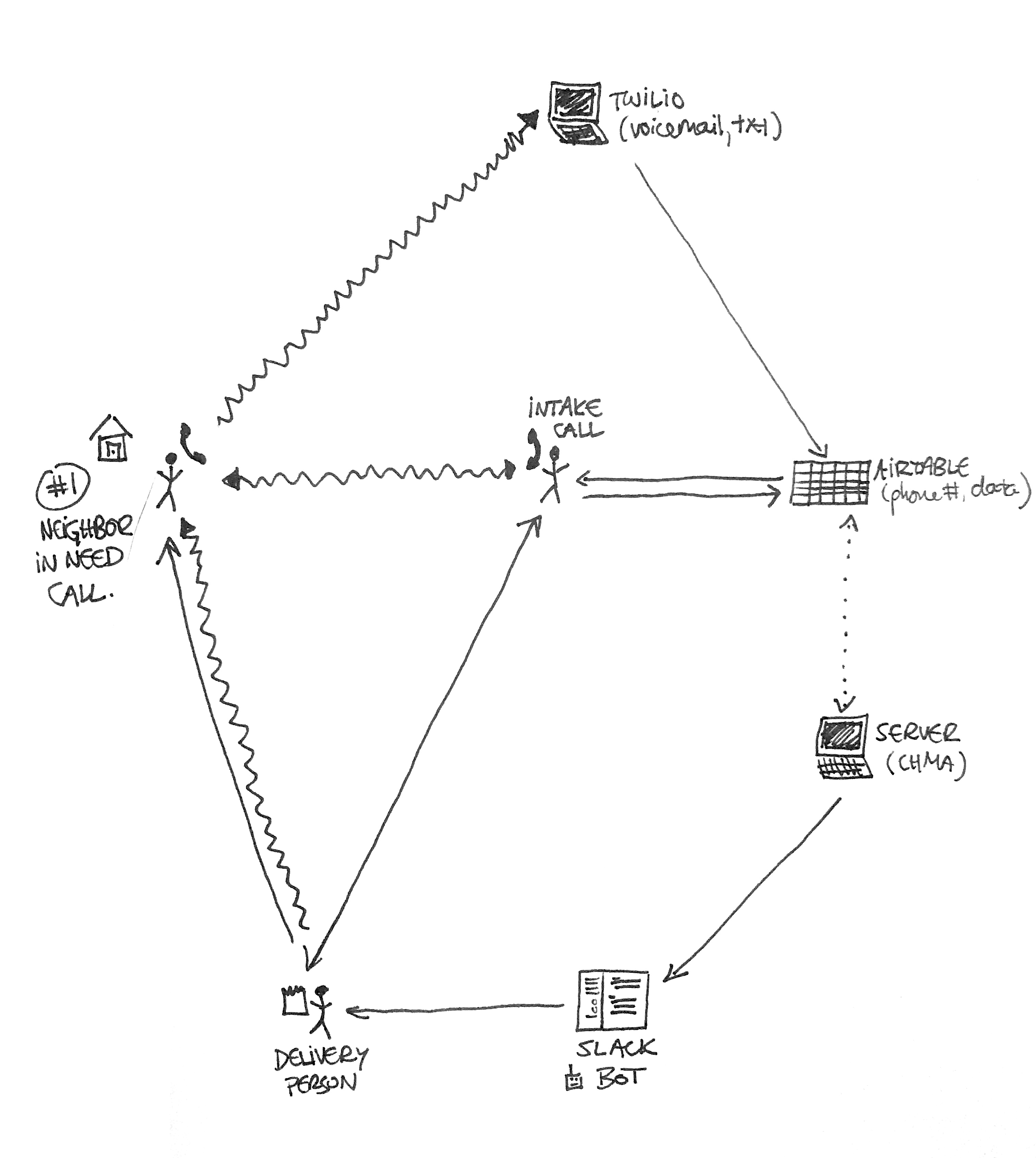For much of 2020 and 2021, I worked on online-only community organizing and collaborating on rapid-response network tech with a mutual aid network in Brooklyn. We wanted to build a system that would spark and facilitate the autonomous community relationships that mutual aid relies upon - simply get neighbors connected by phones/text as quickly as possible, connecting needs/haves. Of course, it's never this simple.